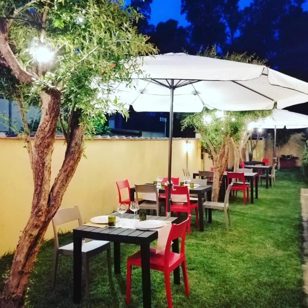 L’atmosfera del giardino è incantevole e permette di godere di cene all’aperto, circondati da piante e fiori che creano un ambiente sereno e rilassante.